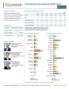 Glenmede Investment Management, LP, a registered Investment Advisor, is an affiliate of the Glenmede Trust Company, NA (GTC). The “Firm” is defined as all investment advisory accounts managed by Glenmede Investment Management LP. Effective January 1, 2007, the Investment Product Management Group of GTC became Glenmede Investment Management, LP. All performance prior to January 1, 2007, shown here as the performance of GIM, was previously reported as the performance of the Investment Product Management Group of the Glenmede Trust Company.