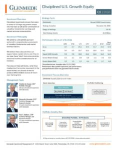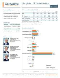 Glenmede Investment Management, LP, a registered Investment Advisor, is an affiliate of the Glenmede Trust Company, NA (GTC). The “Firm” is defined as all investment advisory accounts managed by Glenmede Investment Management LP. Effective January 1, 2007, the Investment Product Management Group of GTC became Glenmede Investment Management, LP. All performance prior to January 1, 2007, shown here as the performance of GIM, was previously reported as the performance of the Investment Product Management Group of the Glenmede Trust Company.