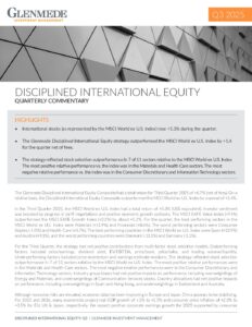 Glenmede Investment Management, LP, a registered Investment Advisor, is an affiliate of the Glenmede Trust Company, NA (GTC). The “Firm” is defined as all investment advisory accounts managed by Glenmede Investment Management LP. Effective January 1, 2007, the Investment Product Management Group of GTC became Glenmede Investment Management, LP. All performance prior to January 1, 2007, shown here as the performance of GIM, was previously reported as the performance of the Investment Product Management Group of the Glenmede Trust Company.